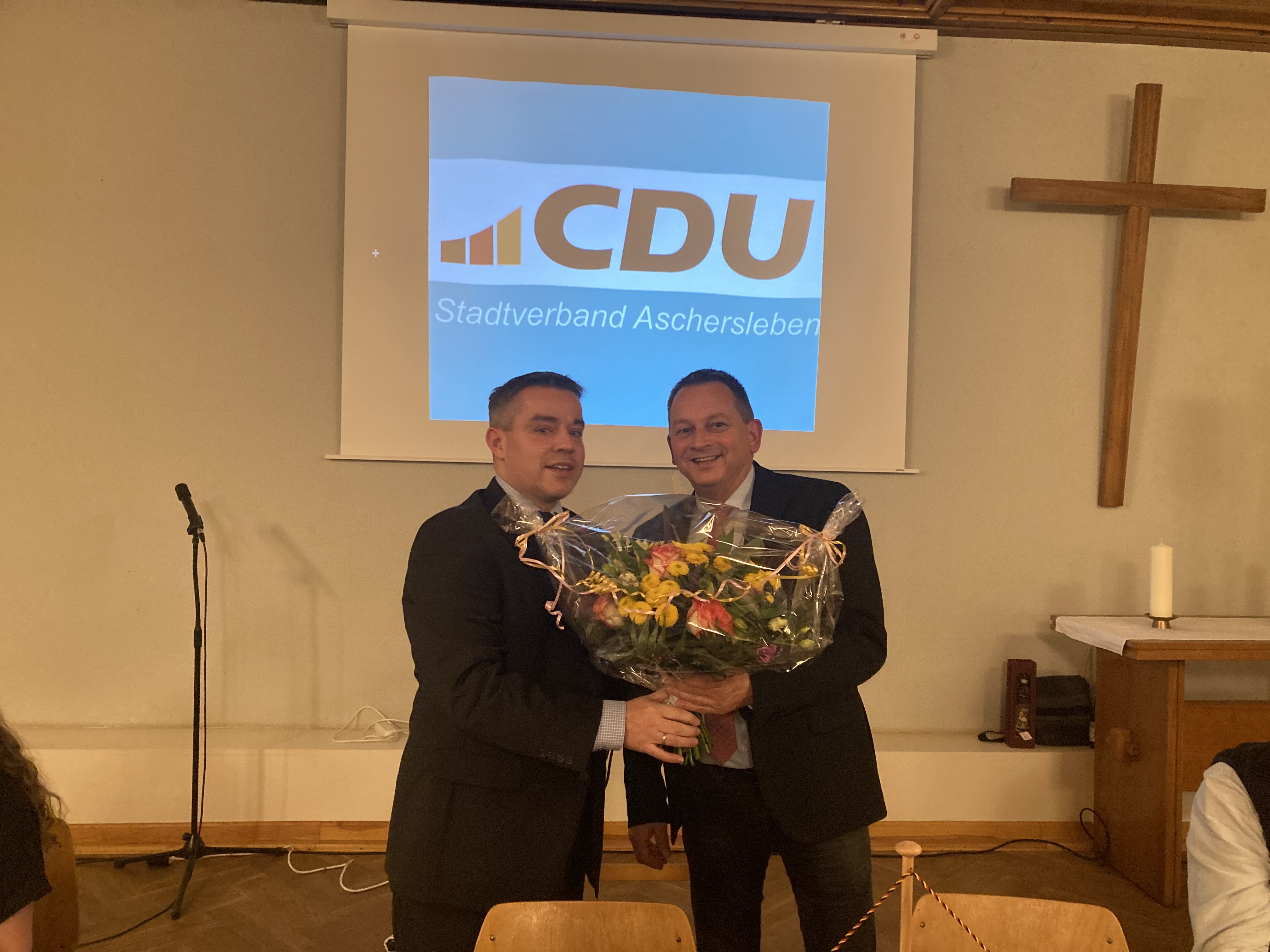 Bei der anschließenden Neuwahl wurde Benno Schigulski als Ortsvorsitzender einstimmig im Amt bestätigt. Auch seine beiden Stellvertreter Stephanie Gürth und Eckehard Peters sowie die sechs Beisitzer Alexandra Dahl, Michelle Korn, Kai Luther, Christoph Peter, Peter Ratzka und Frank Zedler freuten sich über ihre Wiederwahl. Ebenso darf Falk Klenke weiterhin als Mitgliederbeauftragter tätig sein. In seinem Rechenschaftsbericht zog Benno Schigulski Bilanz und bedankte sich für die produktive und reibungslose Zusammenarbeit im Vorstand. Nach den Wahlen ging man zum aktuellen Thema „Wahljahr 2024“ über. Am 09.06.24 finden die Kommunalwahlen und die Wahl zum Europaparlament statt und der Stadtverband Aschersleben wird mit Elan und Tatkraft um Stimmen für die CDU werben.